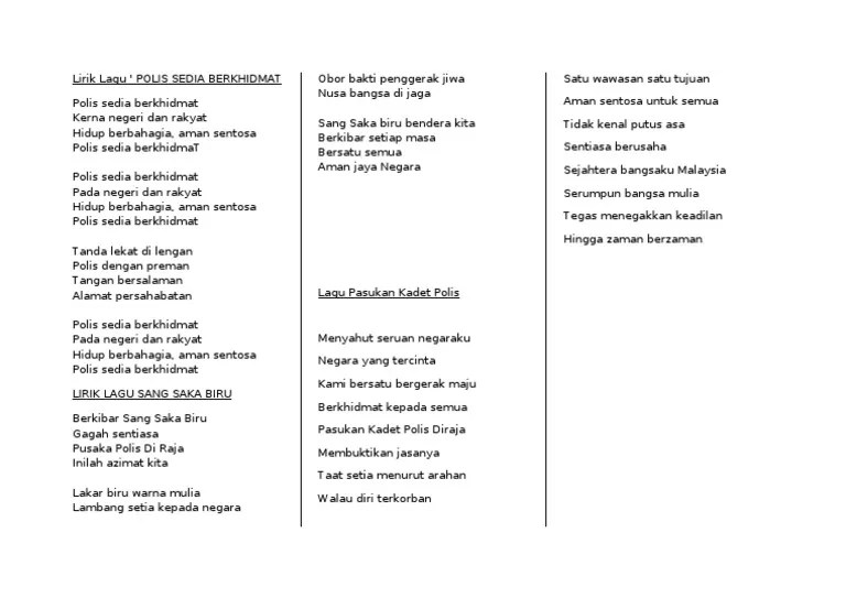 ٢٥ ربيع الأول ١٤٣٣ هـ. Sang saka biru polis evo 2 song lyrics and music by joe flizzow altimet sonaone alif arranged by abg askar on smule social singing app · lagu pasukan kadet polis . Ke mana arah pun a s a p undercover dengar lagu dalam maybach laid . English translation of lyrics for sang saka biru by joe flizzow feat. Pusaka polis di raja inilah azimat kita. Berkibar sang saka biru gagah sentiasa pusaka polis di raja inilah azimat kita lakar biru warna mulia lambang setia kepada negara obor bakti penggerak jiwa Lagu sang saka biru irama perlahan youtube. Lirik lagu sang saka biru.